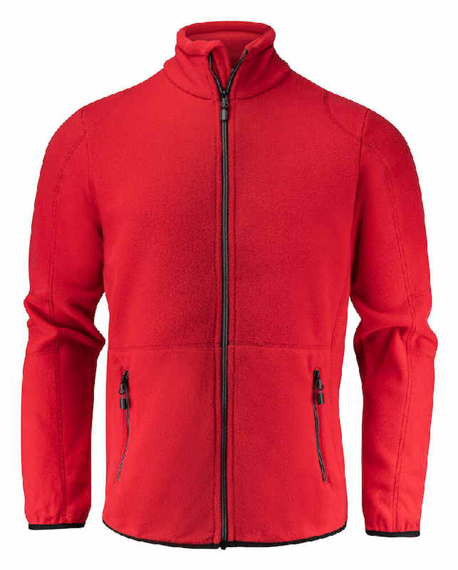Fleece Jacke mit zweifarbigen Reissverschlüssen vorne und an den Taschen. Dekorative Flatlock Nähte. Mit verschiedenfarbigen Reissverschluss Zippern kann die Jacke den Firmenfarben angepasst werden.