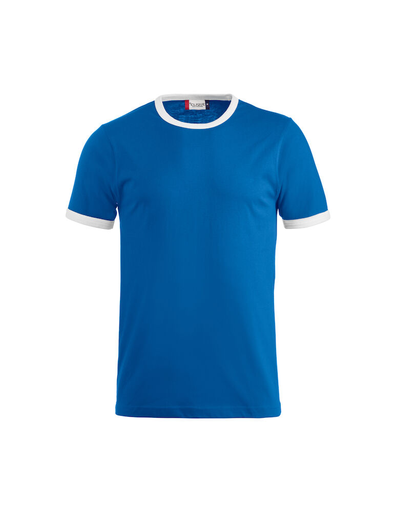T-Shirt Bicolor. Kontrastfarbe an den Abschlüssen des Kragens und der Ärmelbündchen, Hals- und Ärmelabschlüsse mit Elasthan versetzt.